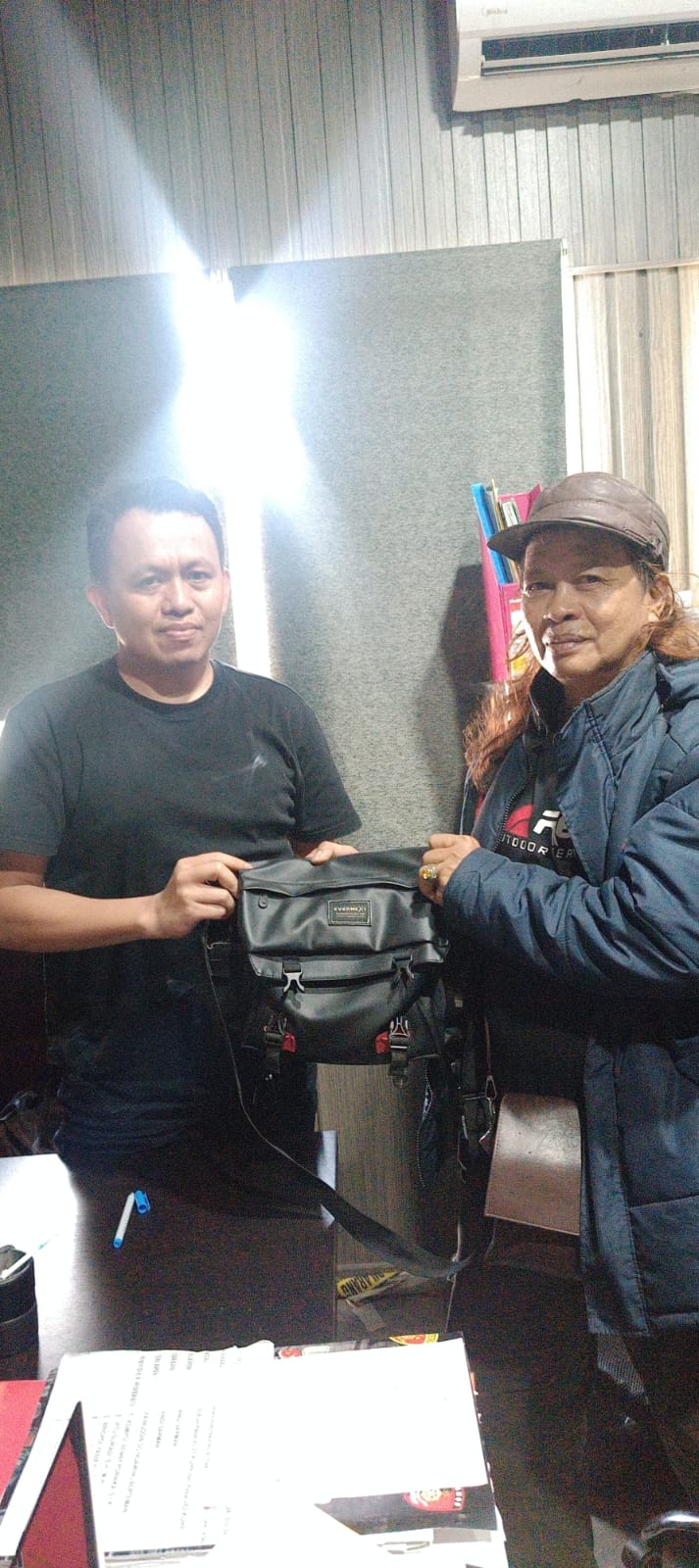 Saat tas ditemukan, seluruh barang yang berada di dalamnya dipastikan masih lengkap dan tidak ada yang hilang.