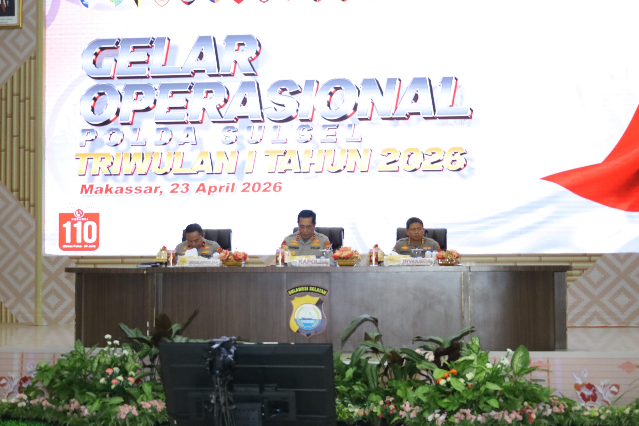 Makassar – Kapolda Sulawesi Selatan Irjen Pol. Djuhandhani Rahardjo Puro, S.H., M.H., menghadiri kegiatan Gelar Operasional Triwulan I Tahun 2026 Polda Sulsel yang dilaksanakan di Aula Mappaoddang Mapolda Sulsel, Kamis (23/04/2026).